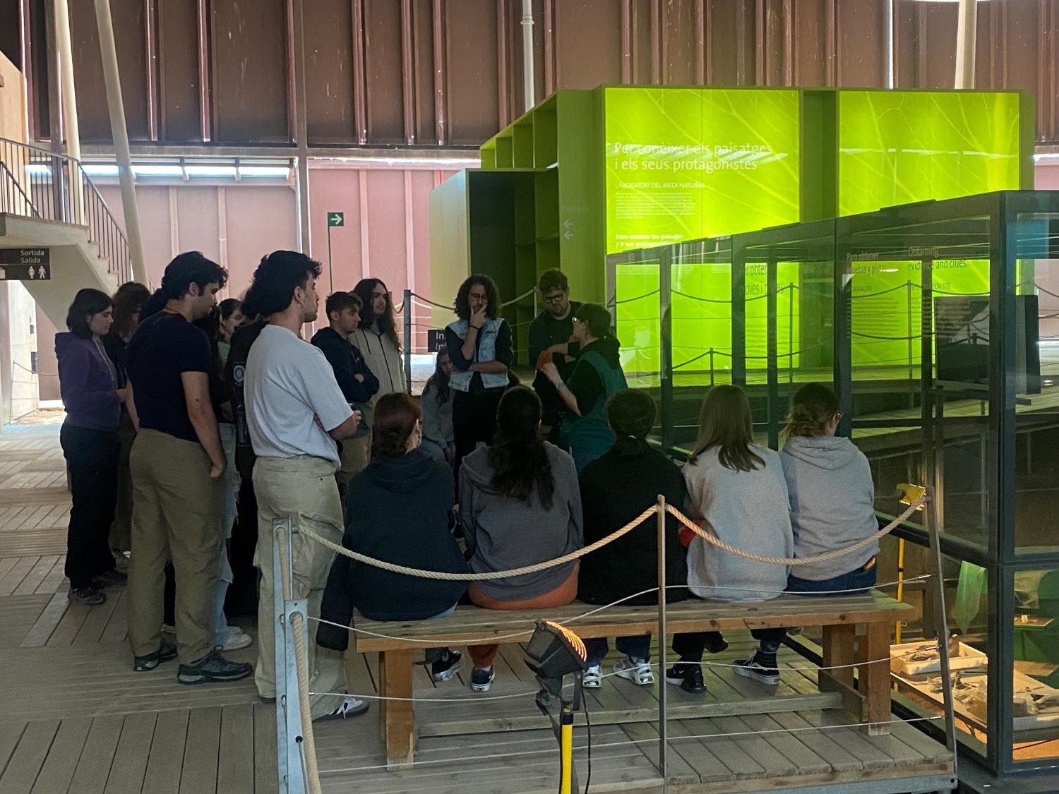 La primera parada va ser a la Cova de Can Sadurní (Begues), on dos membres de l’equip de recerca que dur a terme les excavacions ens esperaven per tal d’explicar als estudiants les característiques de les diferents ocupacions prehistòriques que va tenir aquesta cavitat. Les explicacions es van fer dividint als estudiants en dos grups per facilitar el diàleg dels estudiants amb el guia corresponent.