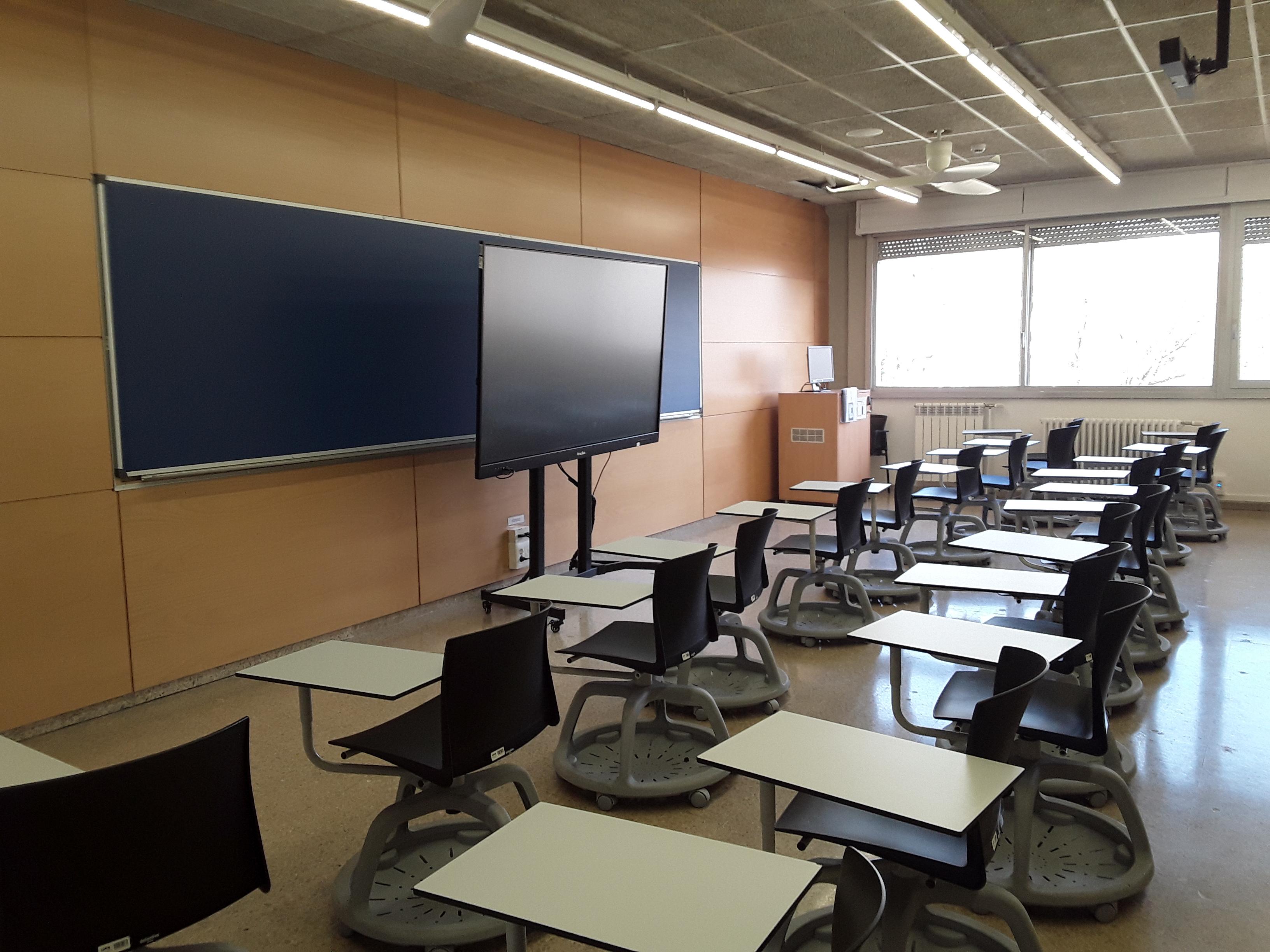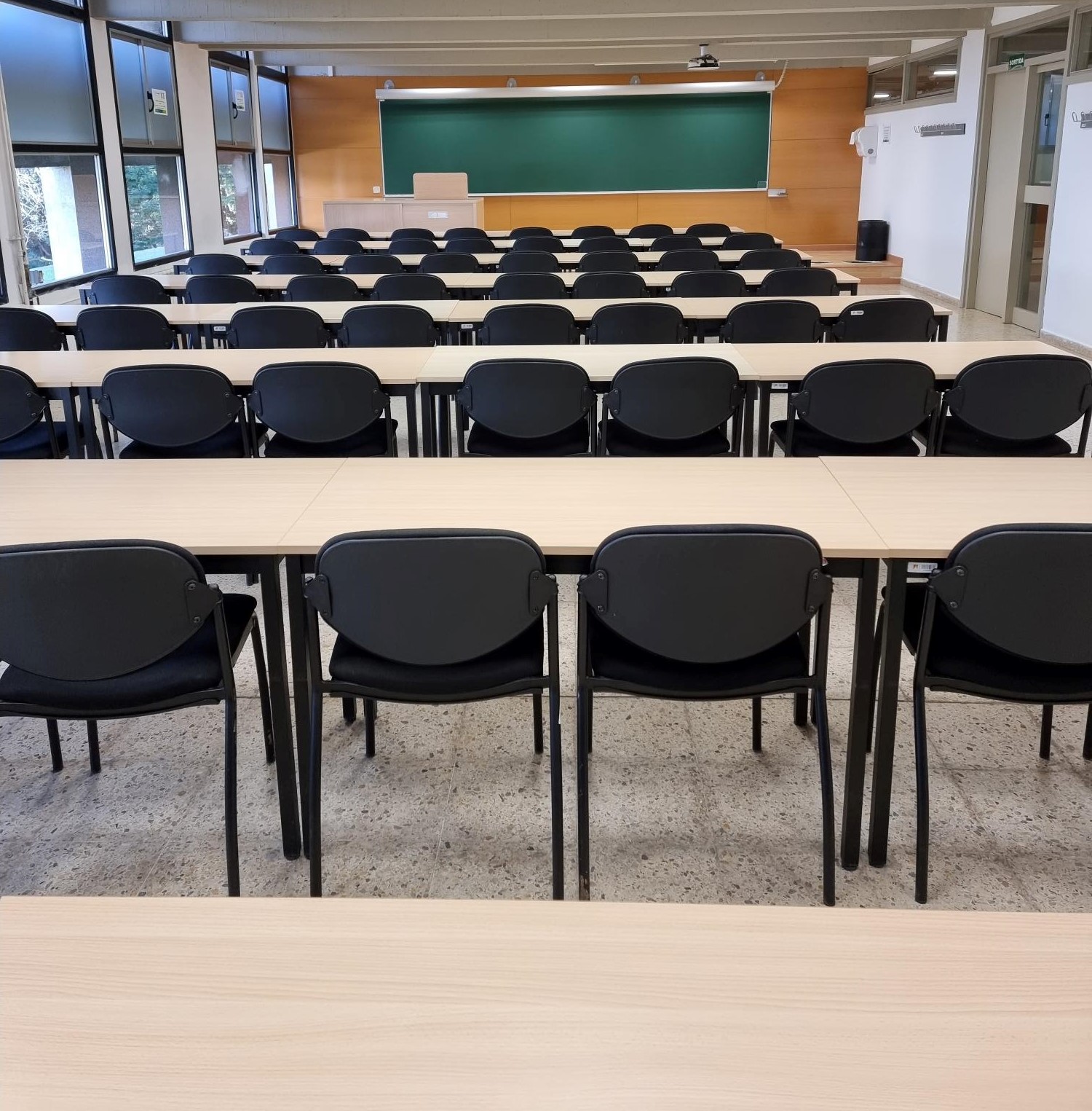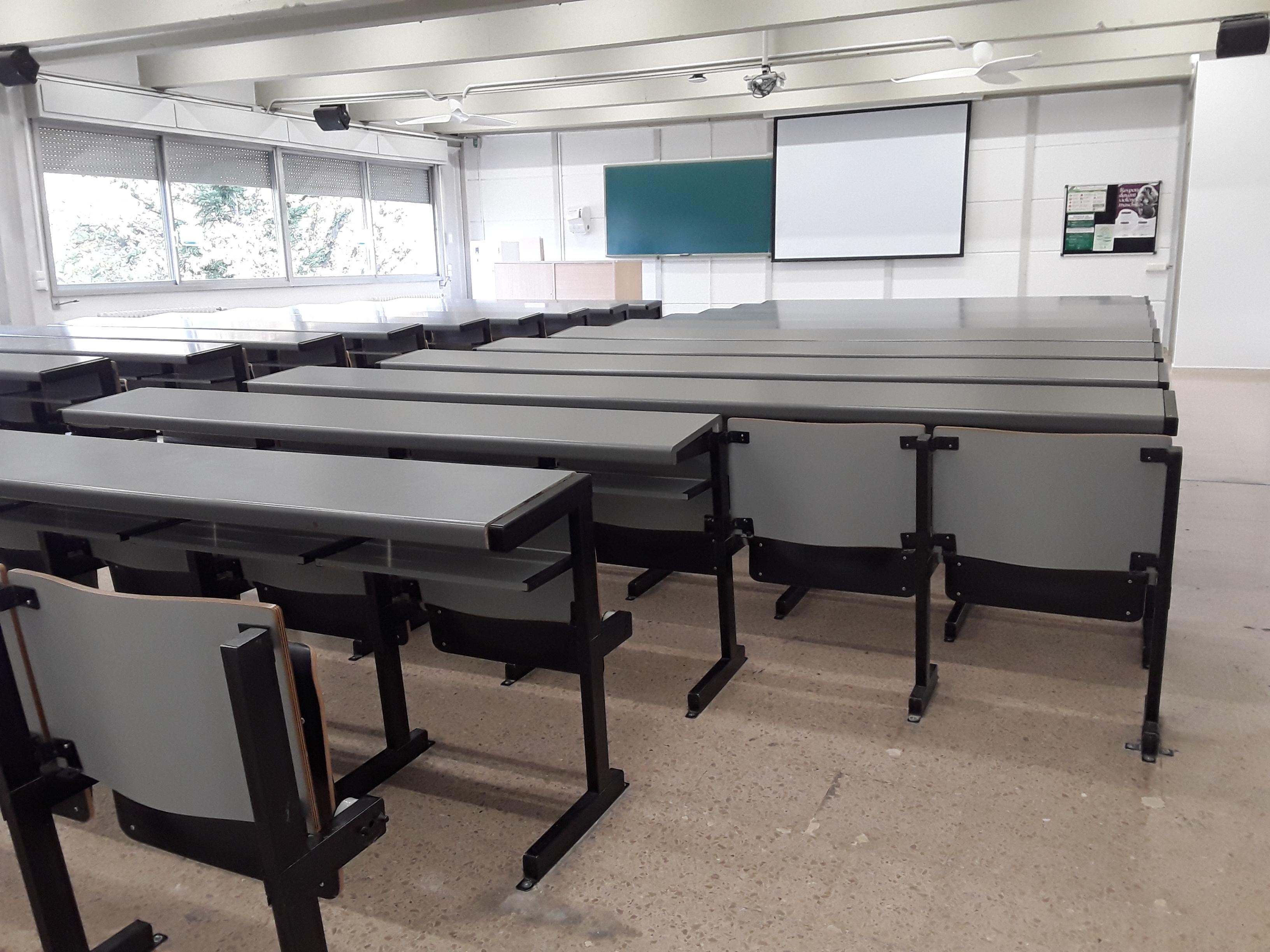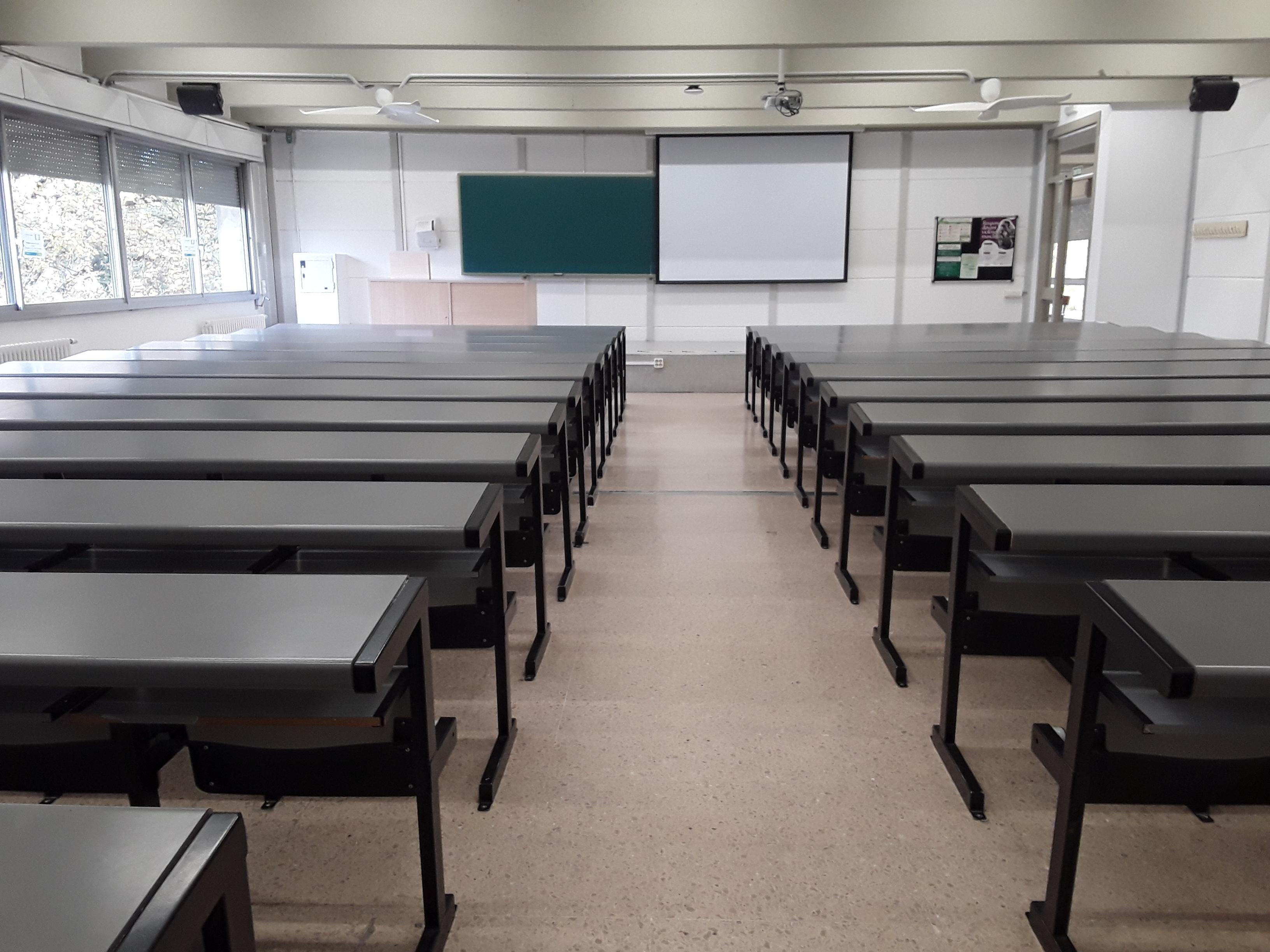 | Aula 2 | Cadires amb faristol | 50 | Sí | Sí | No | Sí | Sí | ||