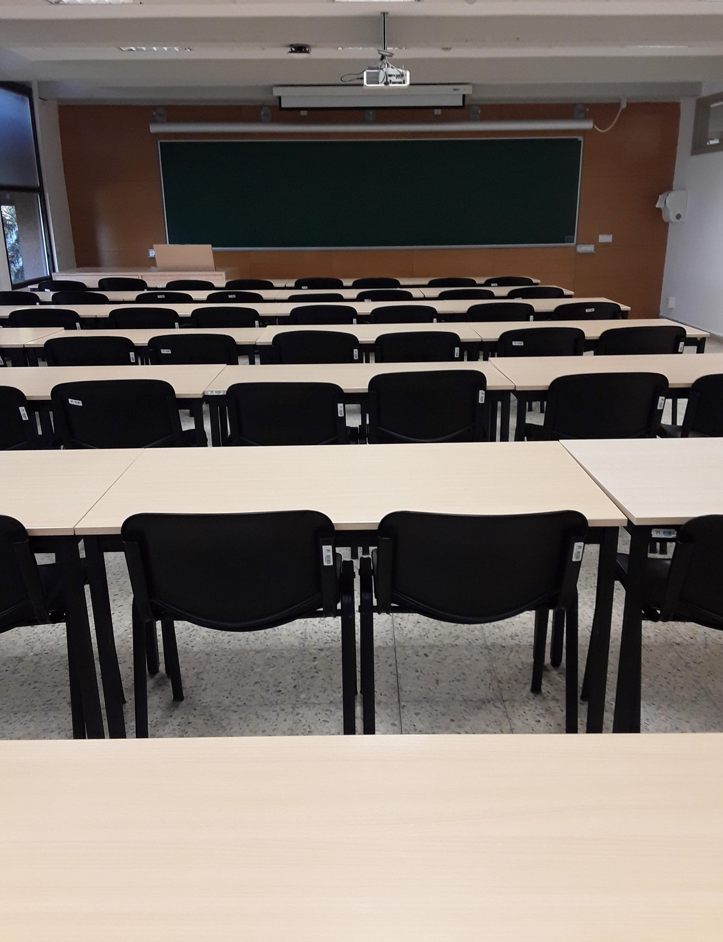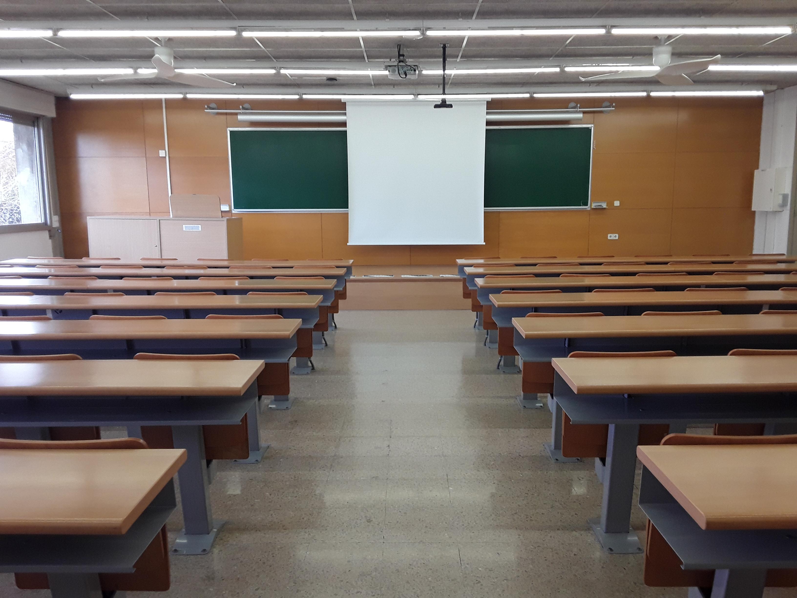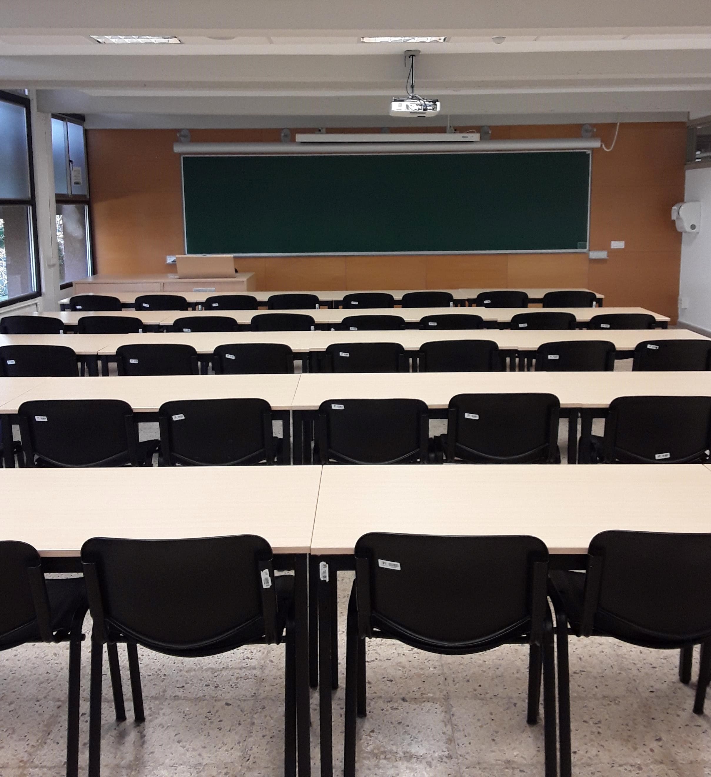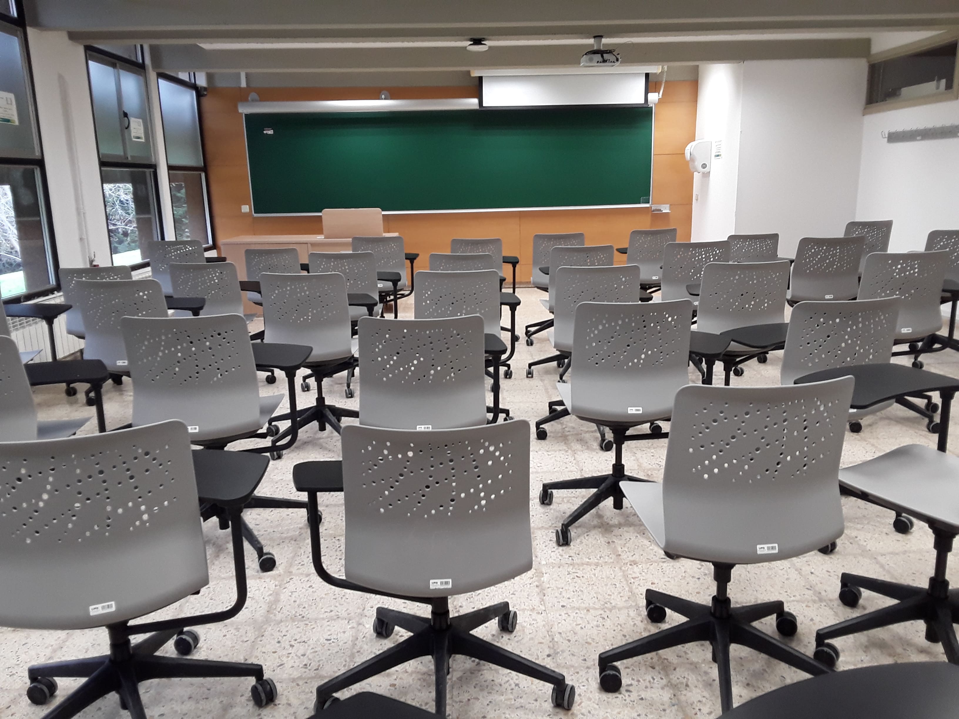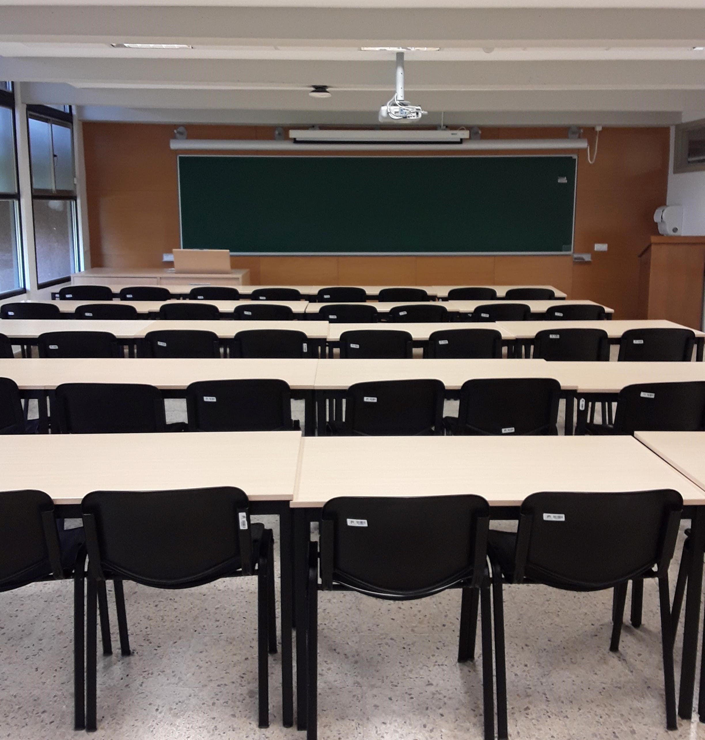 | Aula 2 | Cadires amb faristol | 50 | Sí | Sí | No | Sí | Sí | ||