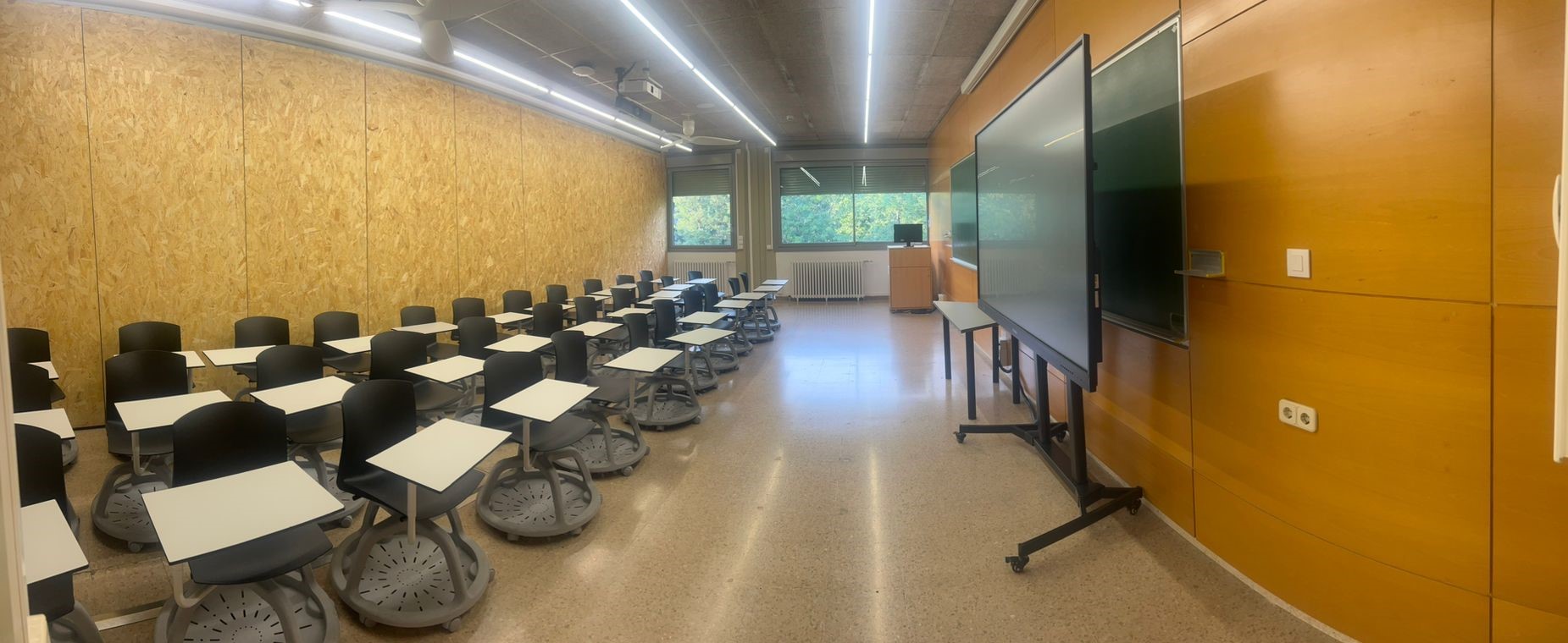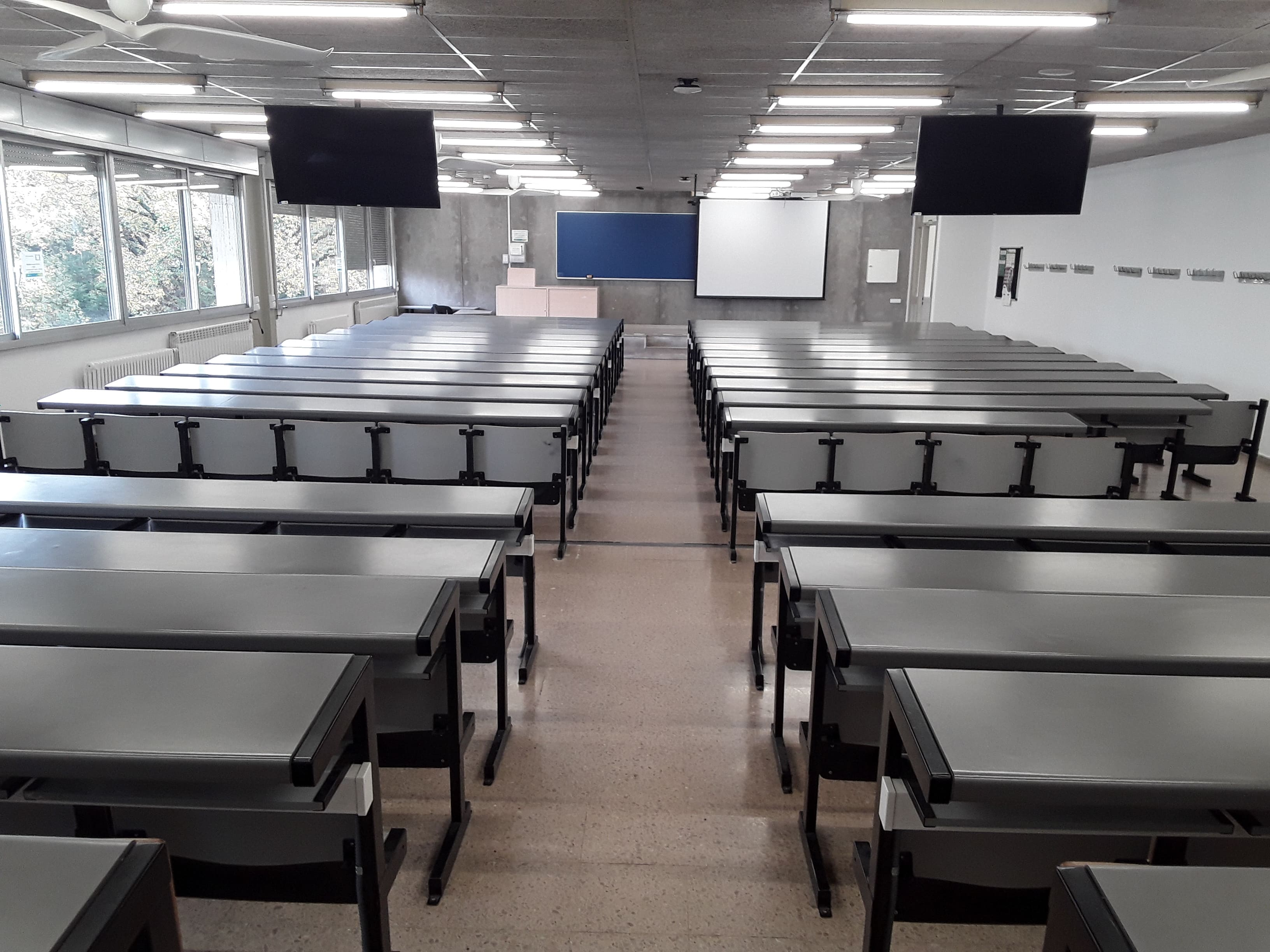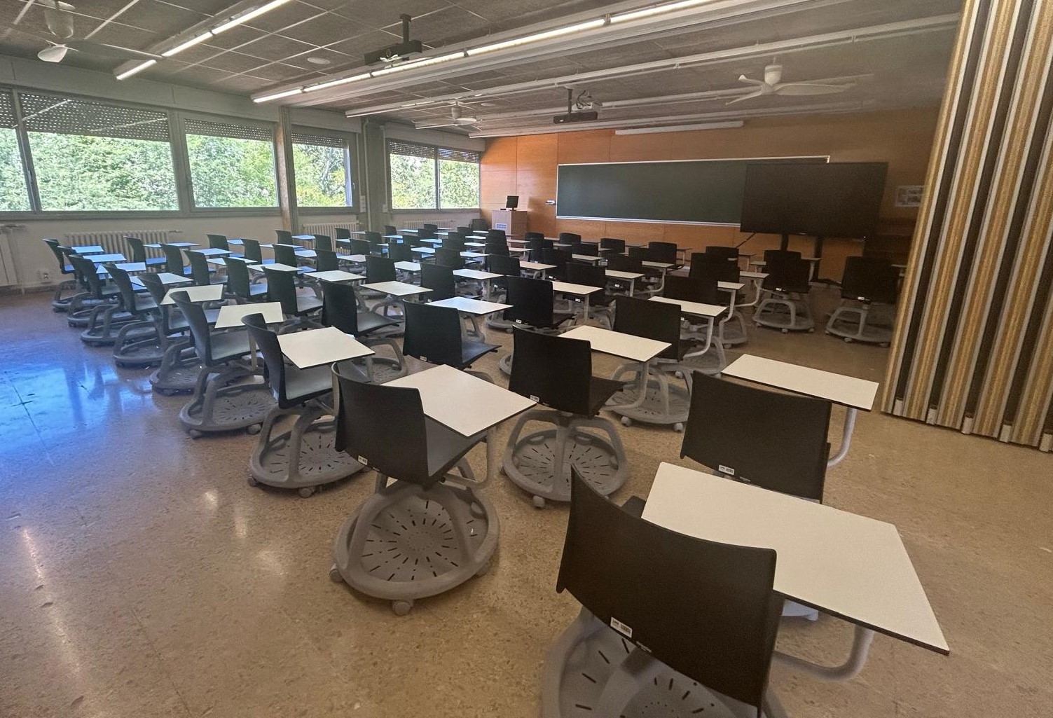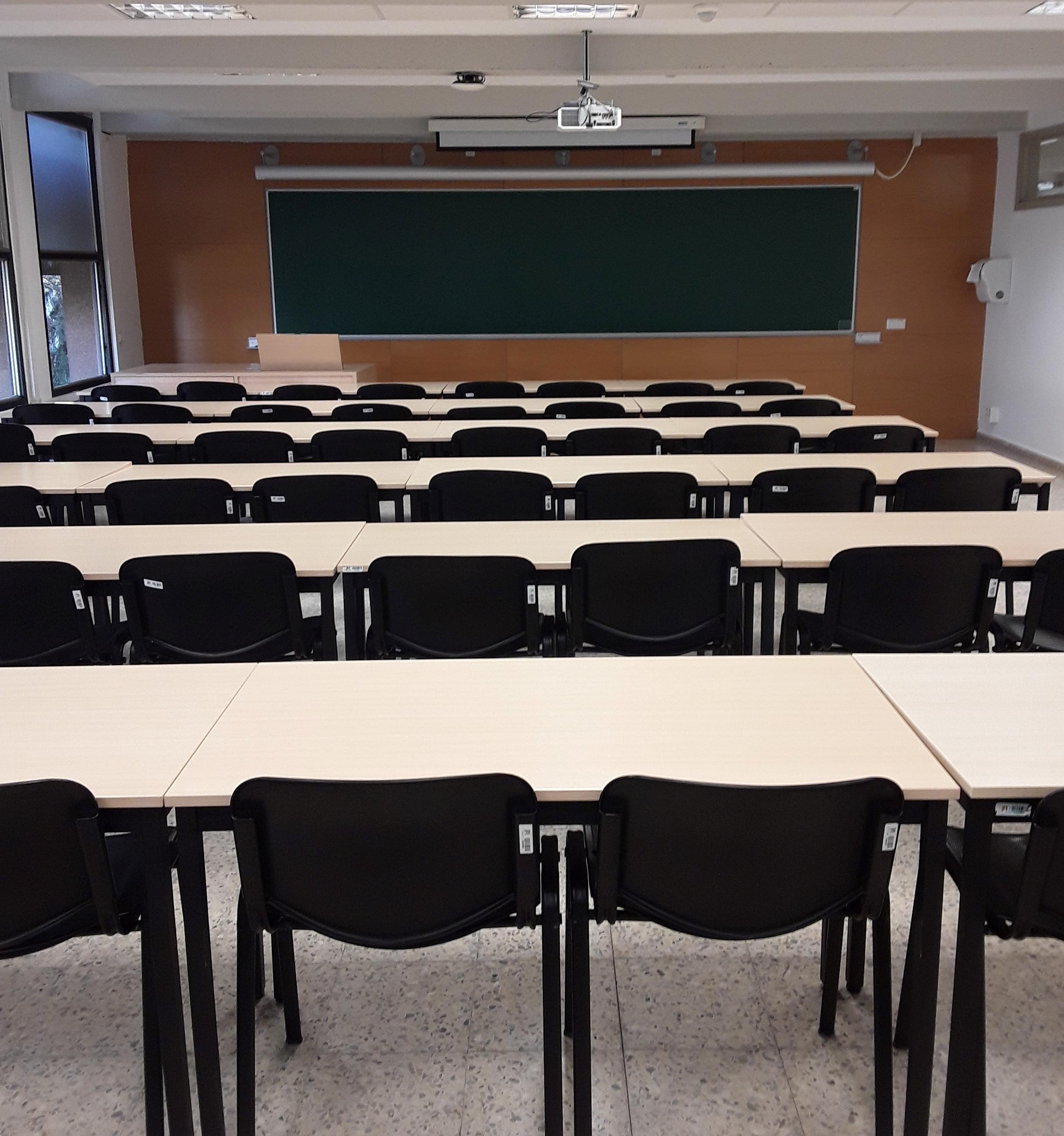 | Aula 2 | Cadires amb faristol | 50 | Sí | Sí | No | Sí | Sí | ||