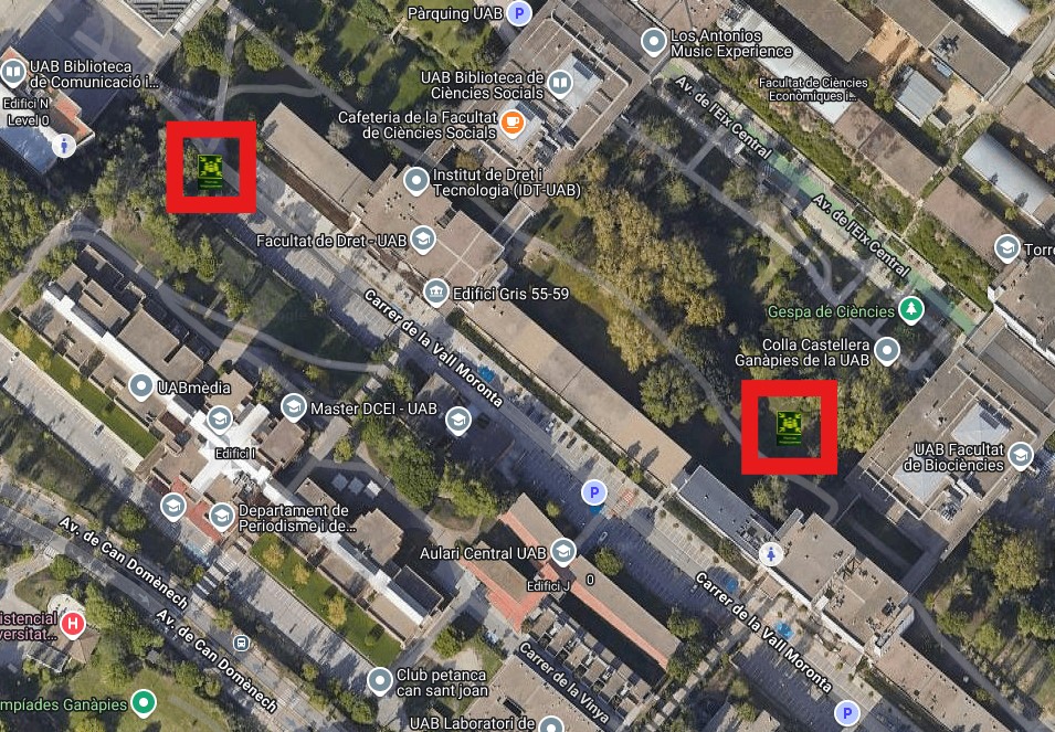Ubicación de los pulsadores y las salidas de emergencias en la Facultad de Derecho