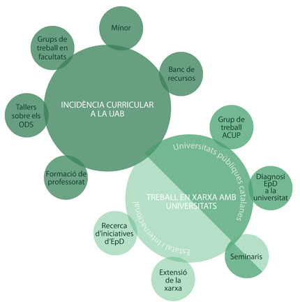 En marxa des del curs 2013-14, el projecte ha afavorit l'articulació d'un conjunt de processos participatius encaminats al disseny i la implementació de fórmules d’integració curricular de l'EpD a la UAB i a nivell català. Es duu a terme en col·laboració amb l’ACUP mitjançant una estratègia de treball en xarxa que aglutina centres i facultats, professorat, estudiants, oficines de cooperació universitària i entitats, entre d’altres, amb el suport de l'Ajuntament de Barcelona.