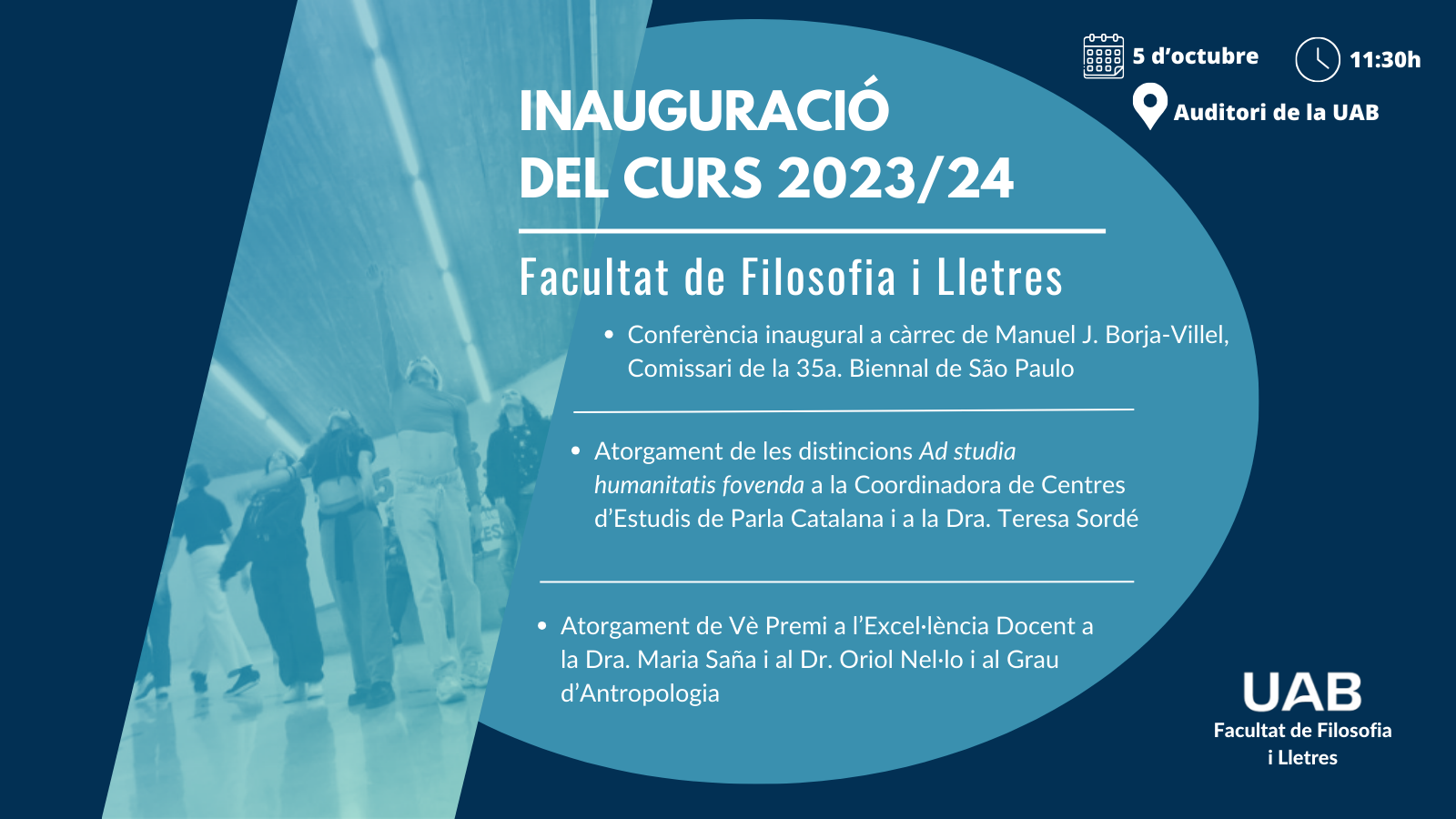 El 5 d’octubre la Facultat de Filosofia i Lletres celebra l’acte d’inauguració del curs 2023/24 amb la conferència “Seis momentos de un tiempo otro” de Manuel J. Borja-Villel, Comissari de la 35a edició de la Biennal de São Paulo.