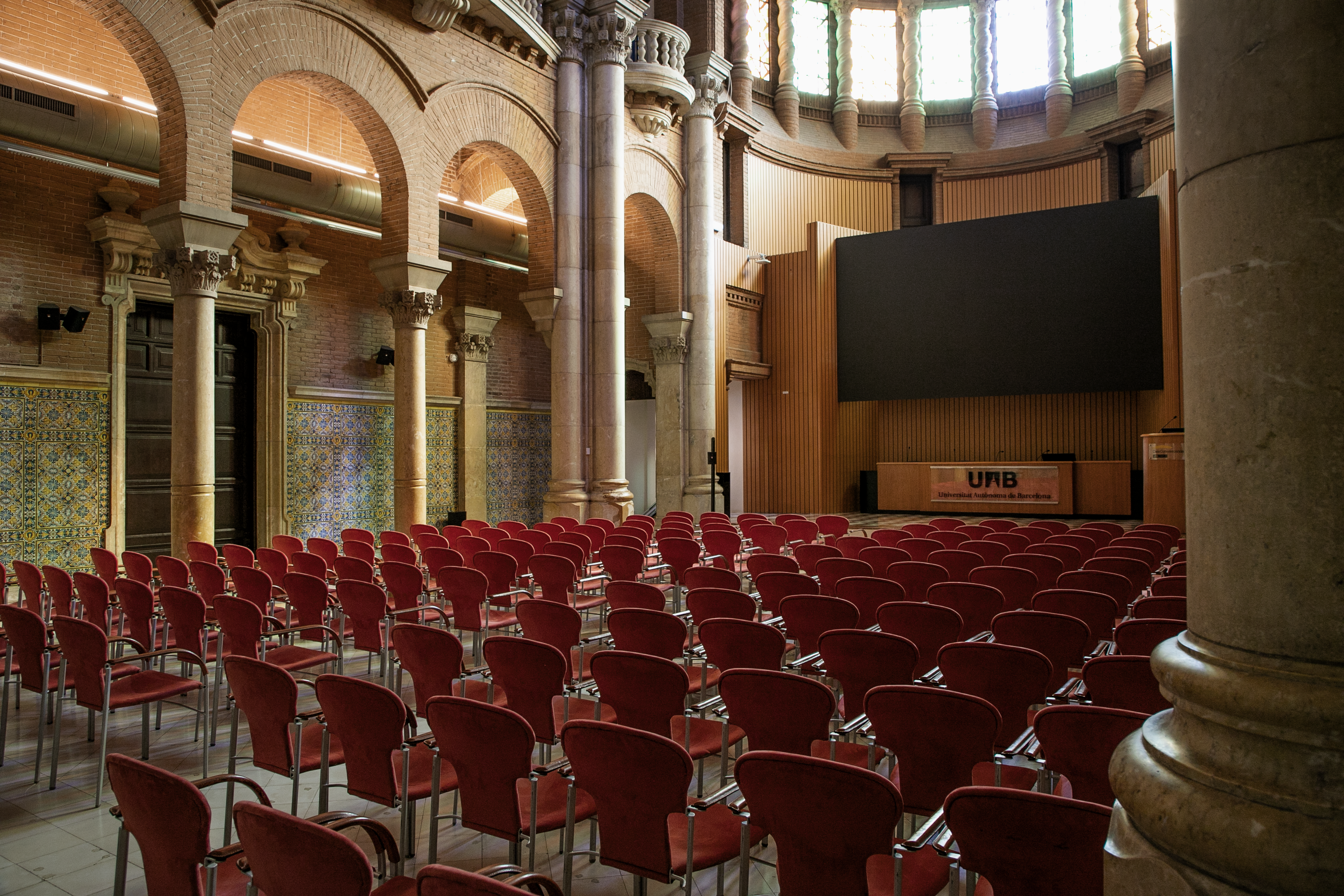 Es pot connectar amb la sala annexa (Aula 11.13) mitjançant circuit tancat de TV.