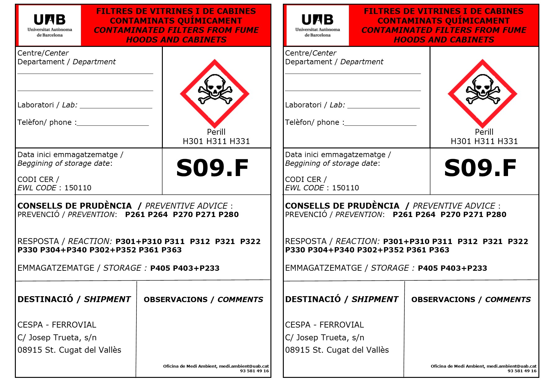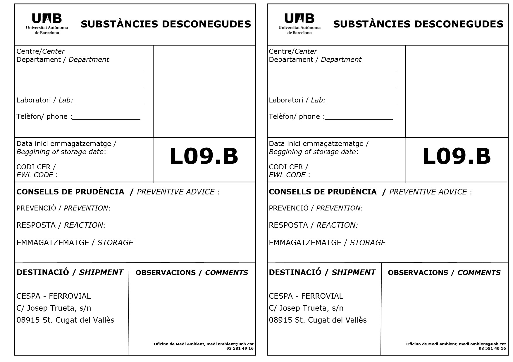 S09A Reactius i Substàncies Desconegudes en Envàs Original