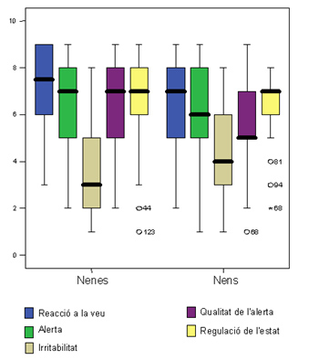 Los niños puntuaron mejor en “Irritabilidad” durante el examen. Esto indica que se mostraron más tranquilos que las niñas. Lo más destacable de este estudio es la mejor predisposición que mostraron las niñas hacia la estimulación auditiva humana. Estos datos, ¿Pueden explicar la mayor capacidad para el lenguaje, detectada en las niñas durante los primeros años?